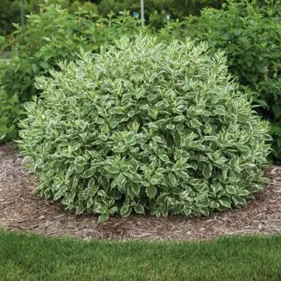 Форма роста: Дёрен белый Элегантиссима (Cornus alba Elegantissima, актуально: C. alba Argenteomarginata) - вертикальнорастущий листопадный кустарник средних размеров.