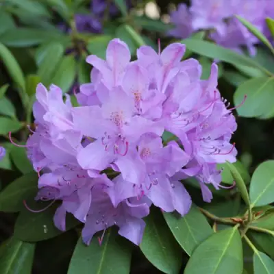 Цветы рододендрона Блю Сильвер являются его главным украшением. В соцветии насчитывается от 5 до 7 цветков среднего размера (около 3 см в диаметре). Цветки имеют воронковидную форму и начинают цвести с розово-фиолетовым оттенком, который постепенно переходит в аметистово-розовый с розовыми прожилками. Такая градация цветов создает чарующий визуальный эффект и делает кустарник незабываемой частью любого сада.