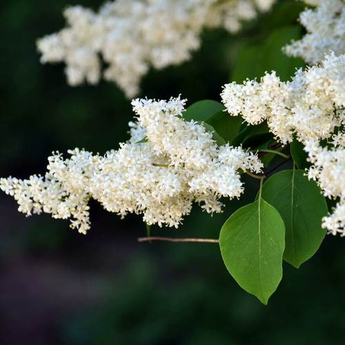 Сирень амурская выпускает крупные широкометельчатые соцветия. Они достигают 25 см в длину и 20 см в обхвате. Цветки ее мелкие, диаметром 5 — 6 мм, с сильным ароматом, белого или кремового цвета. Соцветия распускаются в конце июня – первой декаде июля.