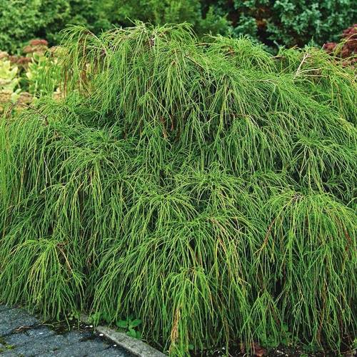 Кора растения имеет красновато-коричневый оттенок, придающий Кипарисовику превосходный декоративный вид. Побеги густые, приподнятые, с нитевидными кончиками, которые создают эффект каскада. Это делает его отличным вариантом для создания акцентирующих зеленых островков в вашем саду, а также для украшения беседок и террас.