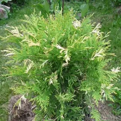 Хвоя зелёно-желтая с крупными кремовыми вкраплениями.