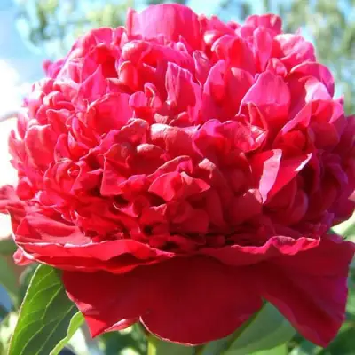 Цветы махровые, шаровидные, среднего размера с диаметром до 15 см. Окраска лепестков малиново-красная с изящными белыми штрихами по краям. Внутренние лепестки узкие, что добавляет цветку особой утонченности. Насыщенность цвета яркая, что делает этот пион настоящей жемчужиной любого сада. Аромат у цветка слабый, не навязчивый.