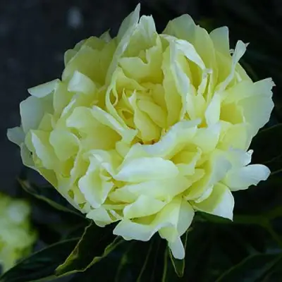 Цветение происходит в средние сроки. Его махровые цветы достигают в размере до 15 см в диаметре, а их окраска варьируется от ярко-желтого до лимонного. С течением времени цветы несколько светлеют, добавляя особую деликатность и изящество к общему виду растения. Аромат цветков, хотя и является легким, все же создает приятную атмосферу в саду и привлекает внимание не только людей, но и насекомых-опылителей.