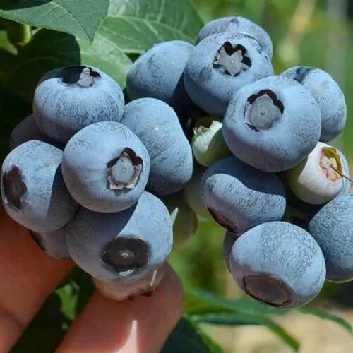 Плоды воспроизводят впечатление своим размером: крупные ягоды, с приплюснутой формой и светло-синей окраской, характеризуются прекрасным сладким вкусом. Настоящая находка для любителей свежих ягод и домашней кулинарии.