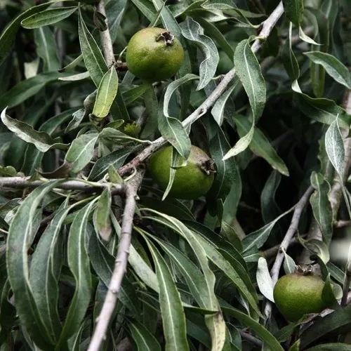 Груша Иволистная отличается от привычных нам плодовых деревьев. Ее главная "изюминка" заключается в листве, которая своим изяществом напоминает иву. Узкие, ланцетные листья имеют приятный серебристо-зеленый оттенок, создающий эффект легкой, ажурной кроны. Дерево формирует широкую, раскидистую крону широкояйцевидной формы. Ветви растения, покрытые редкими колючками, живописно изгибаются и стремятся в стороны и вниз, придавая всему дереву немного загадочный, плакучий силуэт. Ствол чаще всего имеет изящный изгиб, что добавляет груше природного шарма.