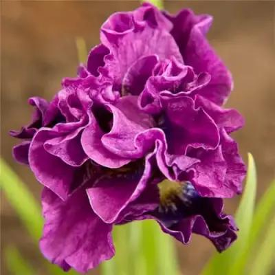 Цветение у Бандл ов Джой начинается в начале лета. В это время на прочных прямостоячих цветоносах распускаются элегантные цветки — лилово-фиолетовые с пятном сапфирового цвета. Бутоны не теряют форму под дождём, не обвисают и долго сохраняют декоративность. Цветок умеренно крупный, лепестки слегка гофрированы, что придаёт соцветию мягкий, почти воздушный силуэт. Аромат у этого сорта отсутствует или очень слабый, что делает его отличным выбором для людей, предпочитающих нейтральный фон в саду или страдающих от цветочной аллергии.