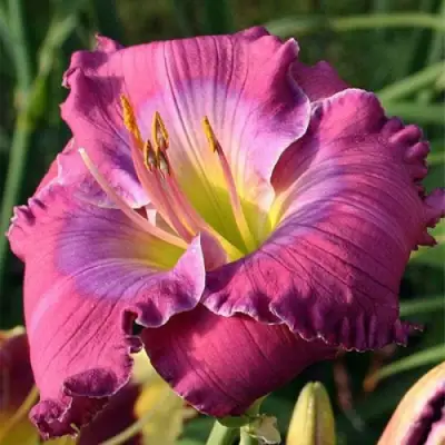 Цветок "Лавендер Блу Бэби" — это настоящее произведение искусства! Простая форма и крупные размеры (диаметр 14 см) придают ему необыкновенную привлекательность. Основная окраска цветка ярко-сиреневая с фиолетовым кольцом и каймой. Гофрированные края и сине-сиреневый глаз делают этот лилейник поистине уникальным. Аромат цветения столь же прекрасен.