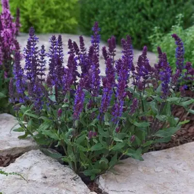 Сорт активно используется в современных ландшафтных решениях: он гармонично смотрится в миксбордерах, альпийских горках и рокариях, а также в контейнерных посадках и городских цветниках. Благодаря компактной форме и насыщенной окраске, шалфей создаёт выразительные акценты среди многолетников и злаков, привнося динамику и цветовой контраст в любое озеленение.