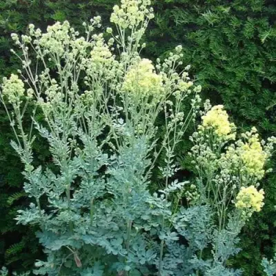 Многолетник достигает 180 см в высоту и формирует вертикальный, слегка раскидистый куст с изящной, сизо-зелёной листвой, похожей на папоротник. Весной побеги поднимаются быстро, летом – раскрываются плотные соцветия лимонно-жёлтого оттенка. Они собраны в рыхлые, пушистые метёлки до 30 см, которые выглядят легко и естественно. Цветение начинается в июле и продолжается до середины августа. Лёгкий аромат привлекает насекомых, делая василистник не только декоративным, но и экологически полезным элементом сада.
