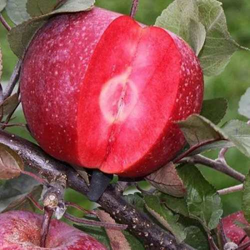 Плоды Ред Кетти крупные, весом 150-200 граммов, имеют плоскоокруглую форму и прекрасно выровненные поверхности. Их насыщенно красная окраска делает яблоки привлекательными как для потребления в свежем виде, так и для использования в кулинарии. Кожица плодов тонкая, а мякоть сочная и довольно плотная, розово-красного цвета, отличается сладко-кислым вкусом с легкой терпкостью и ароматом лесных ягод. Это создает идеальное сочетание для истинных любителей яблок.